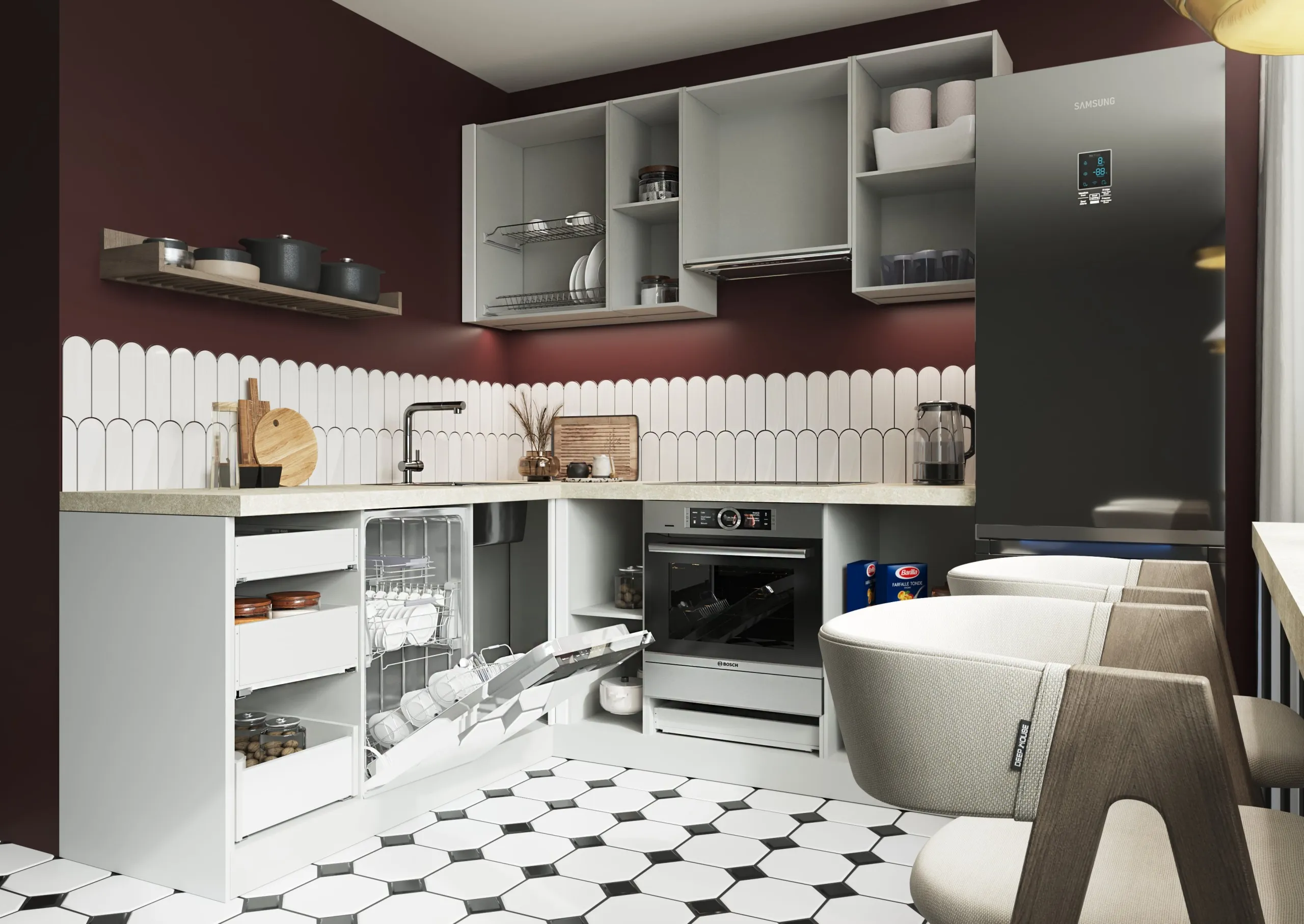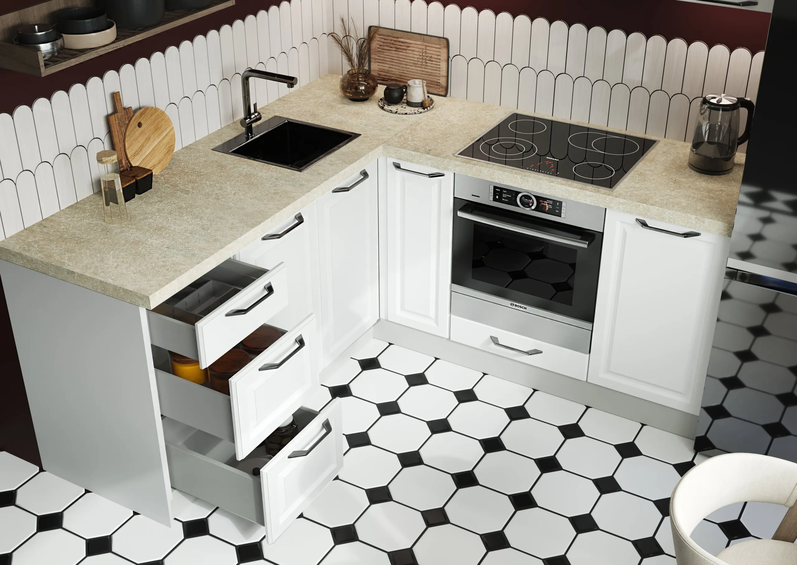 Механизмы открывания: петли BOYARD с доводчиком, направляющие Quadro 25 (Hettich)
