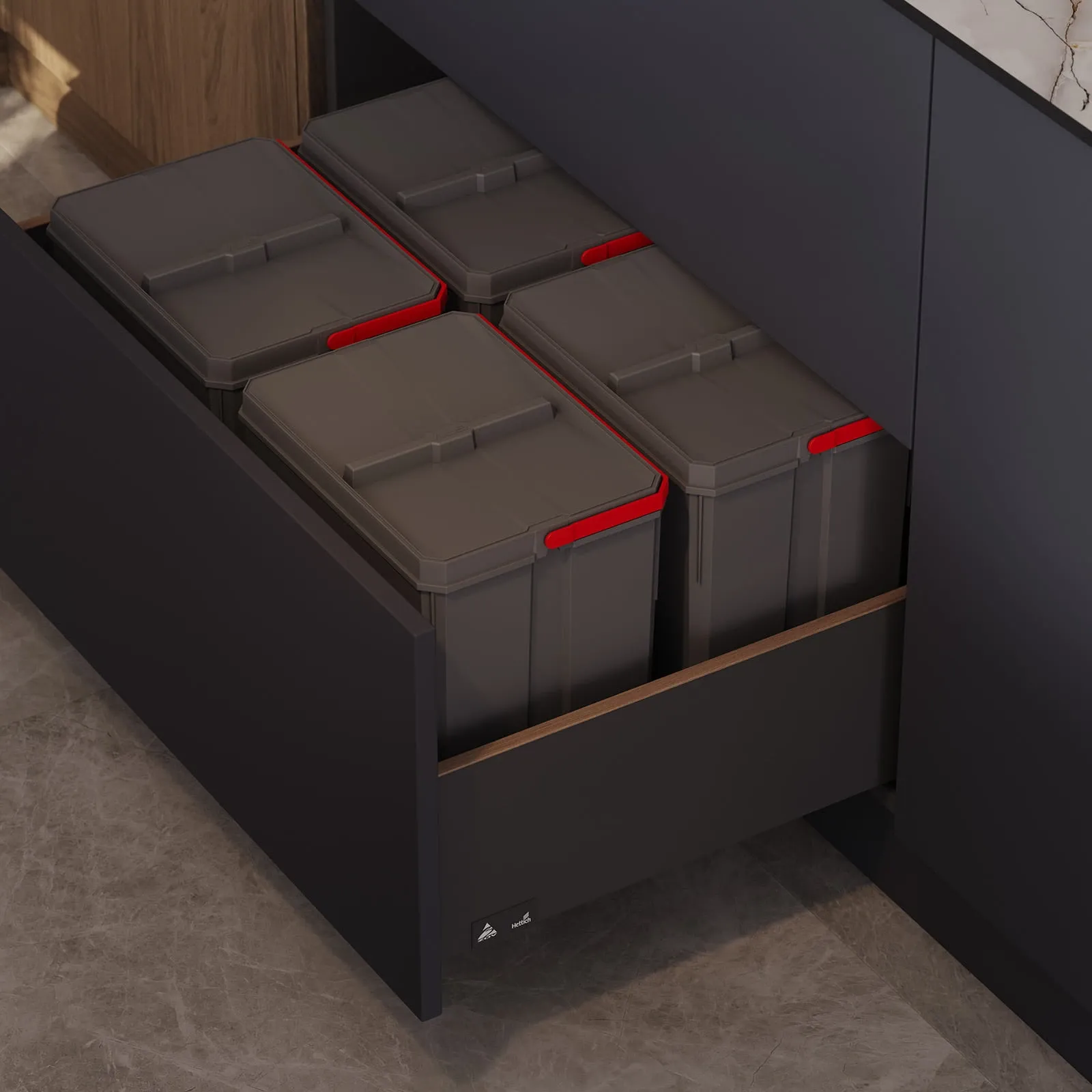 Аксессуары: Выдвижная система VS TAL Gate Pro, парящая полка (цвет профиля Черный Матовый), система для сортировки отходов AXISPACE