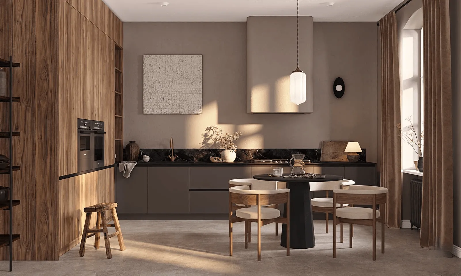 Фасады: Т119В / T121В Шпон дерева (Орех Американский); МДФ / PET, цвет Вольфрам PET.