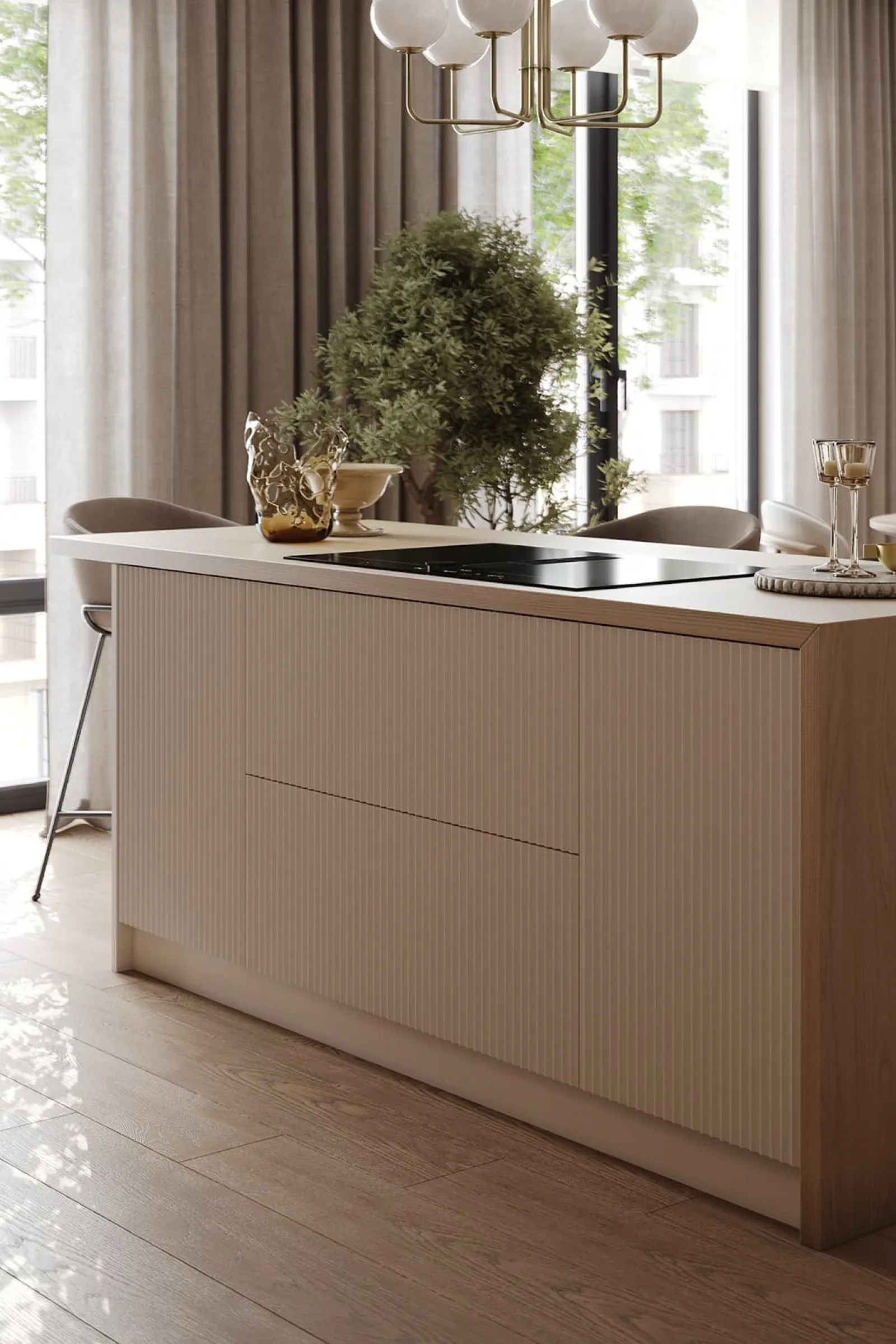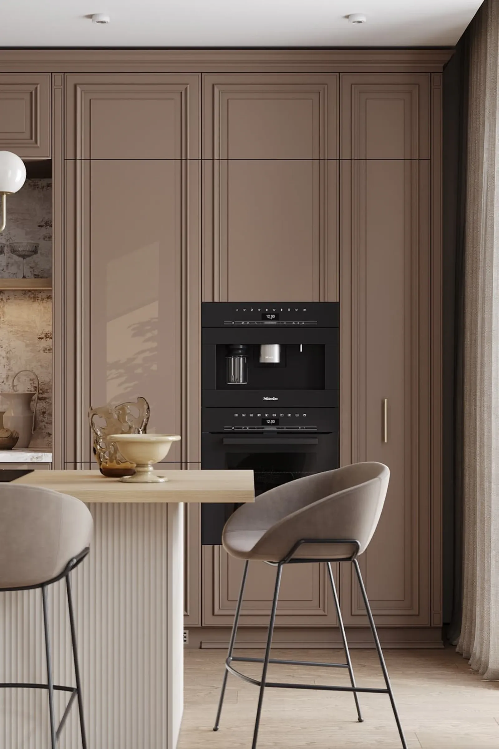Фасады: Т654 Крашеная МДФ, цвет NCS S 5010-Y70R Матовый / Т646 Крашеная МДФ, цвет NCS S 0500-N Матовый