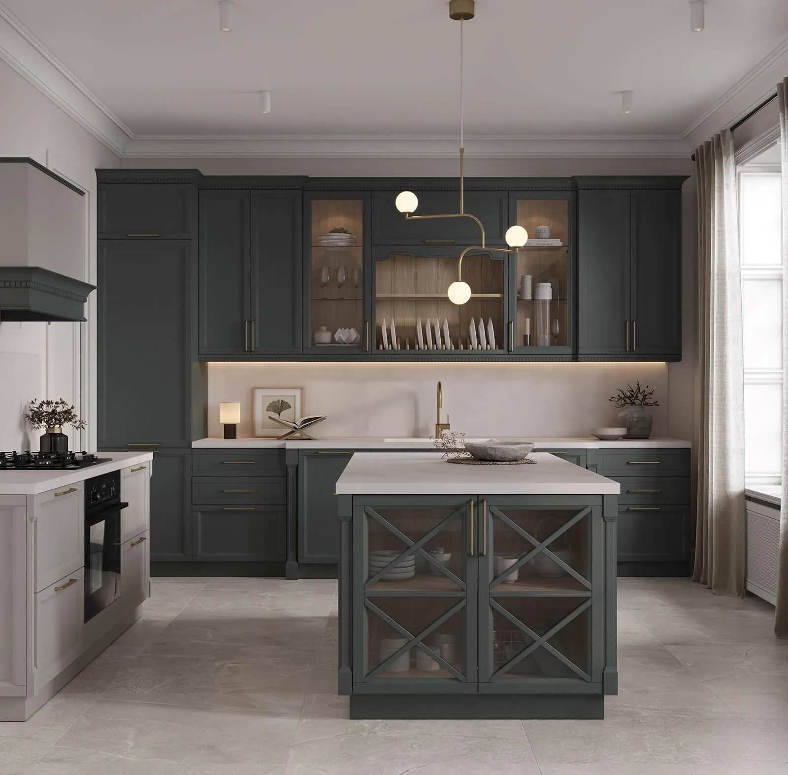 Декоративные элементы: Опора декоративная ОД-12(820); пилястра #14; плинтус мебельный ПМ-1; багет Б-3 прямой; декоративный короб HB «Орлеан» (900) под встраиваемую вытяжку; шкаф навесной для посуды МШНС (ширина 900 мм)