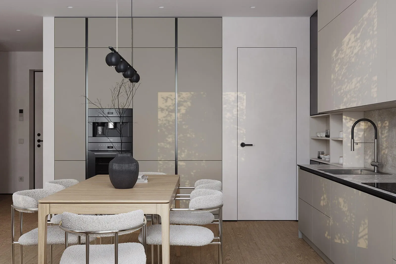 Витрины: Алюминиевый профиль А-6 Черный Матовый (скрытая петля AIR PUSH), стекло Тисненое-4 Графит прозрачное