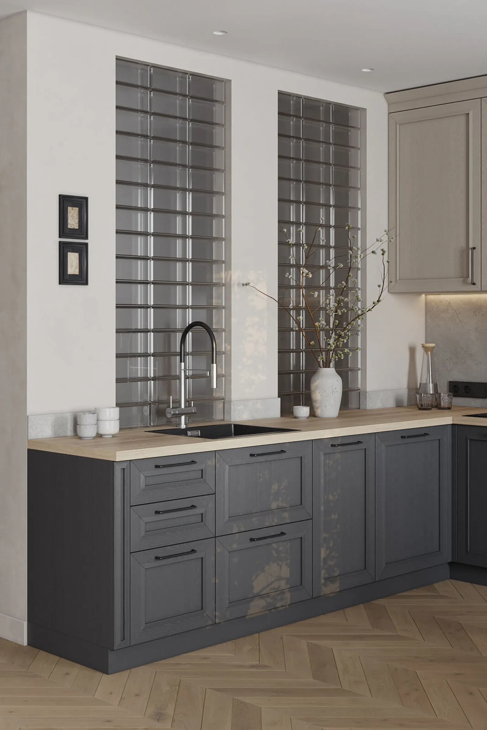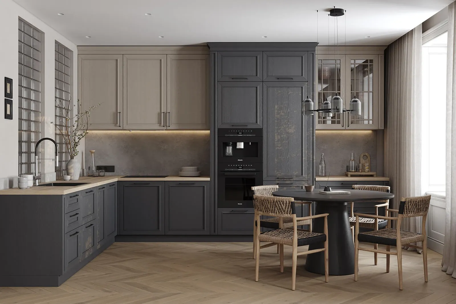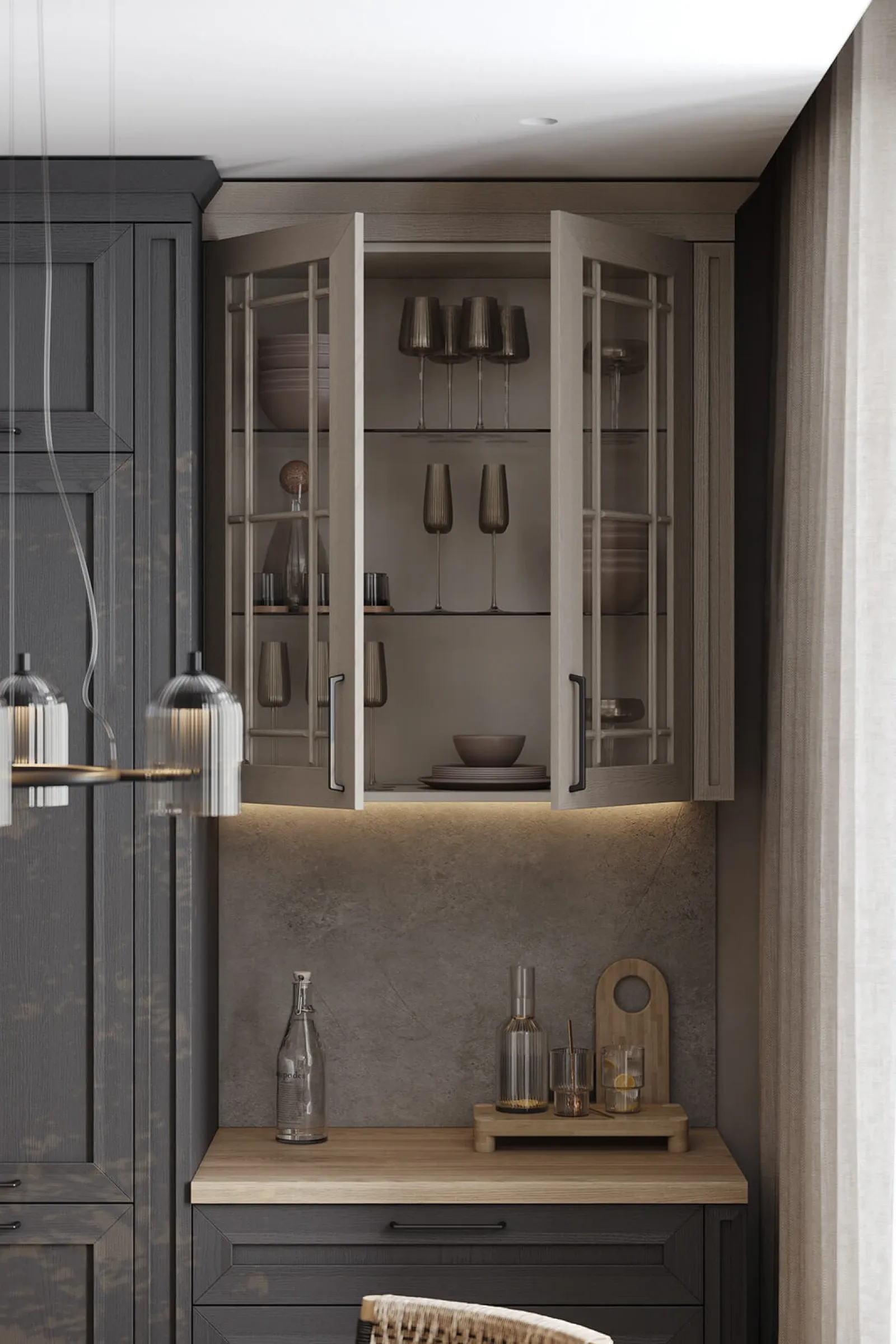 Система выдвижения: LEGRABOX, цвет Серый Орион Матовый; профиль с акцентной подсветкой