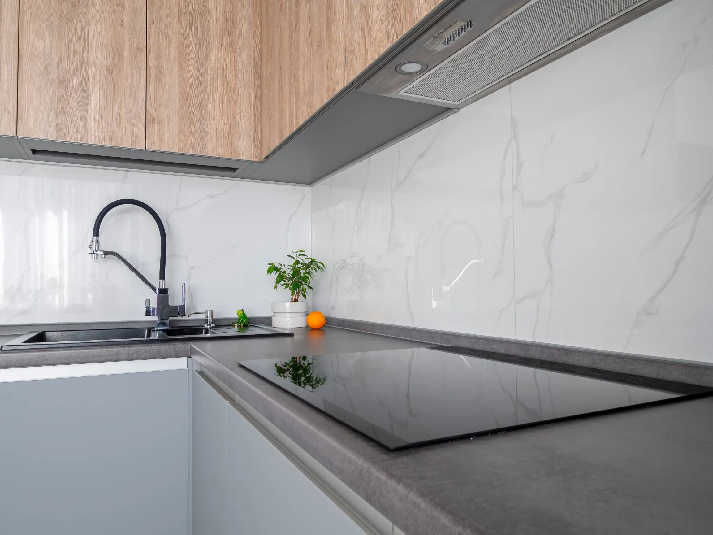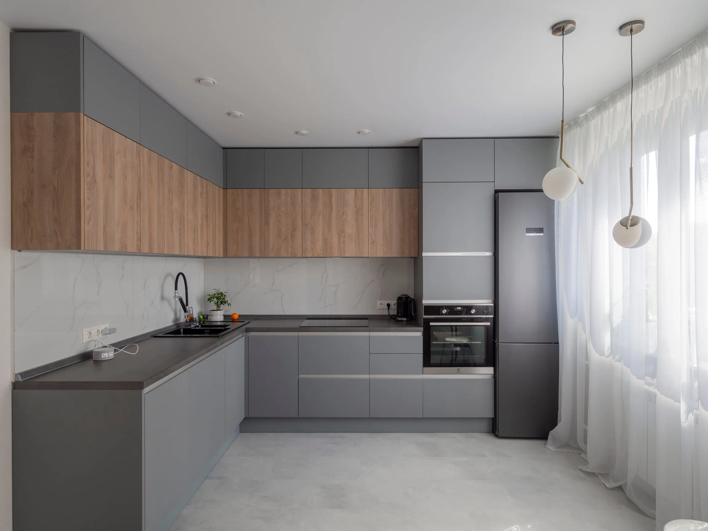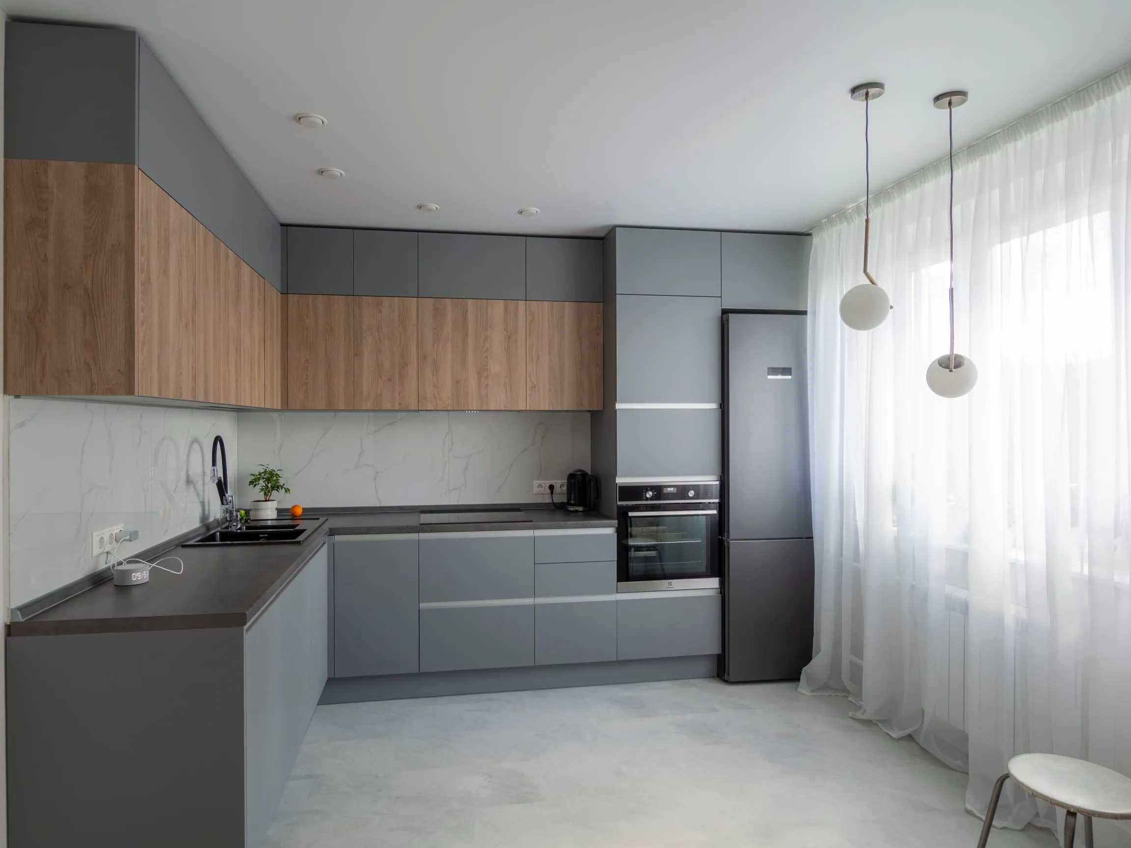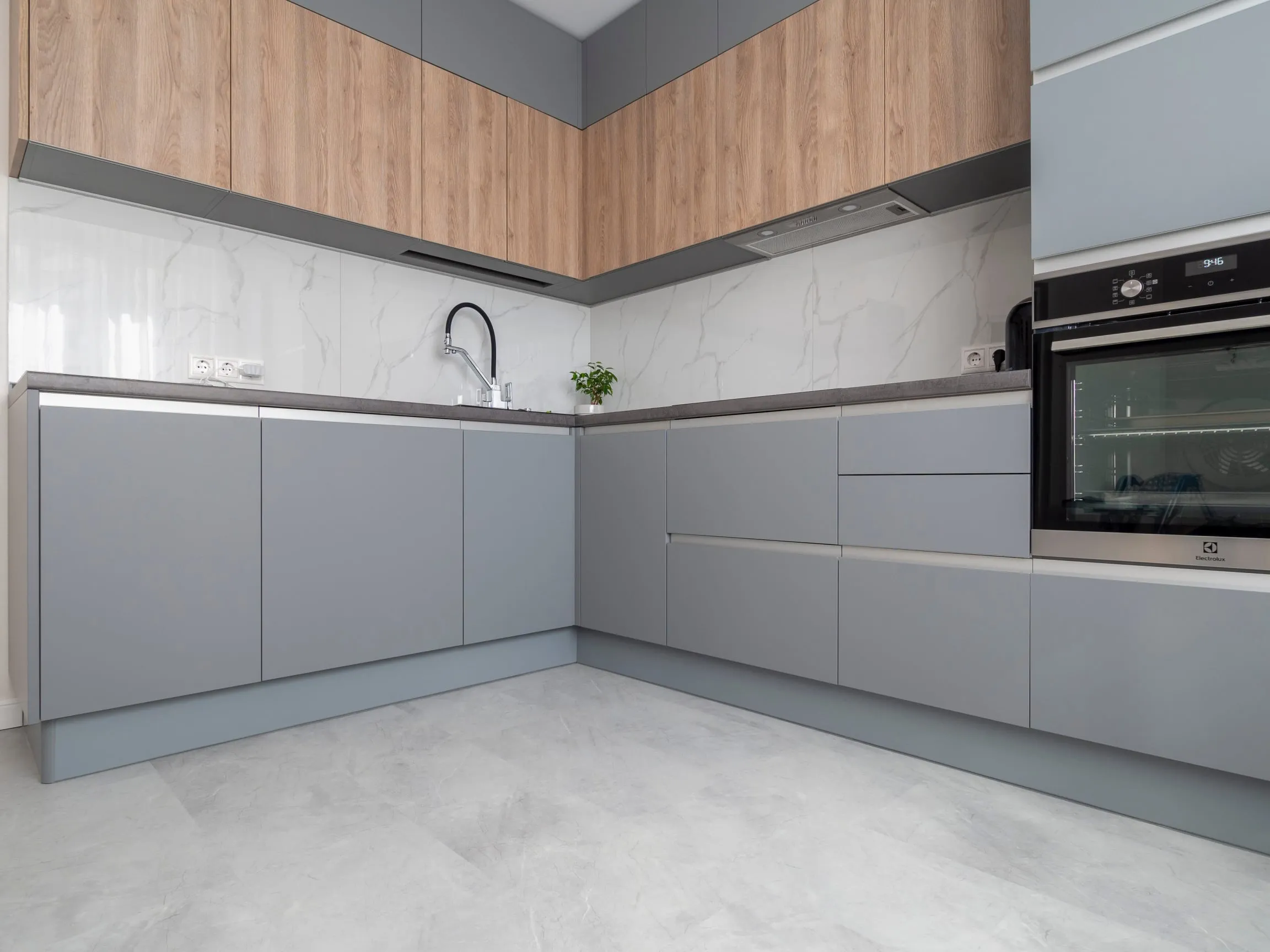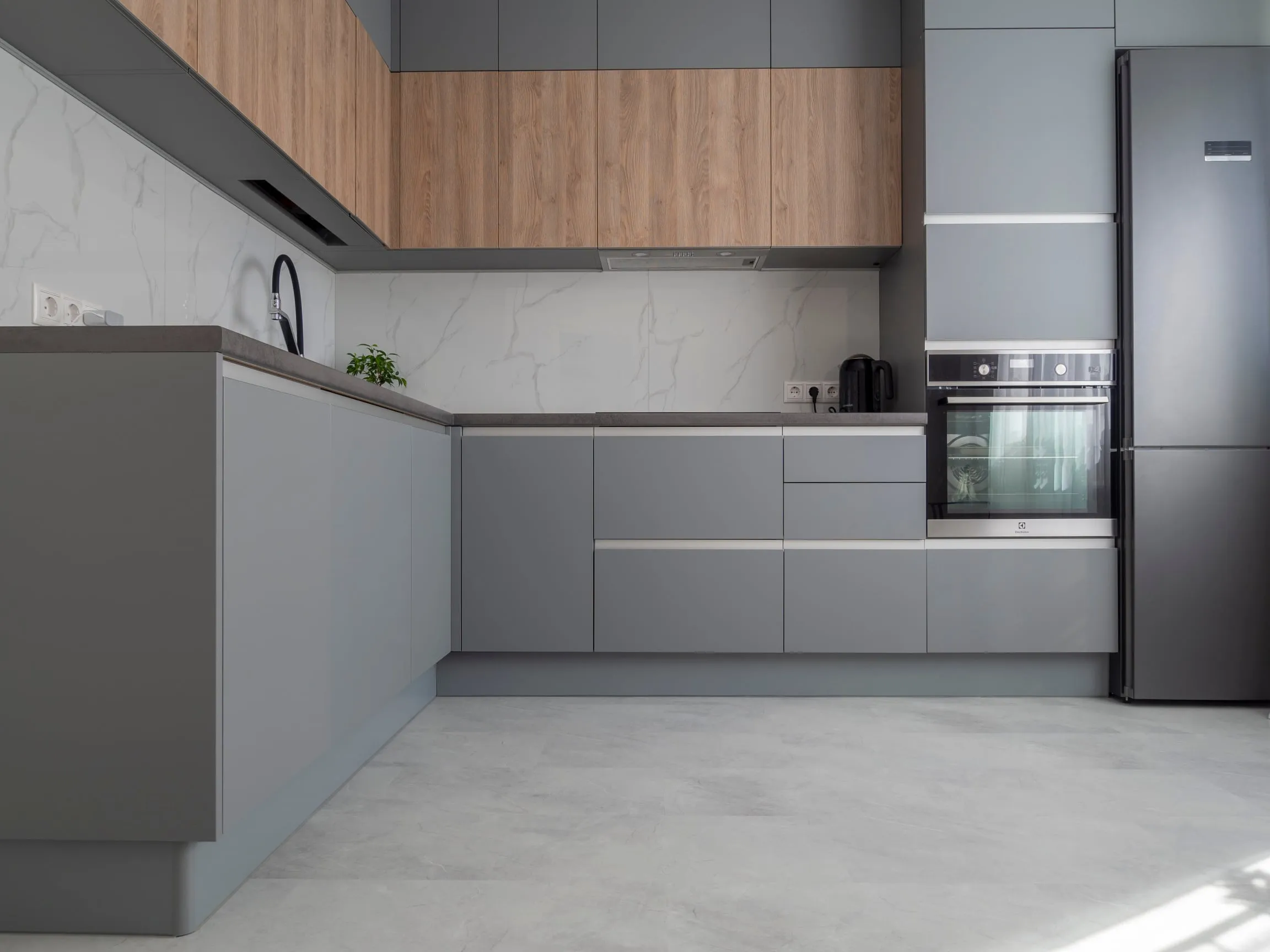 Фасады: ЛДСП Тимбер Сабиа верт / Акрил Серый мат