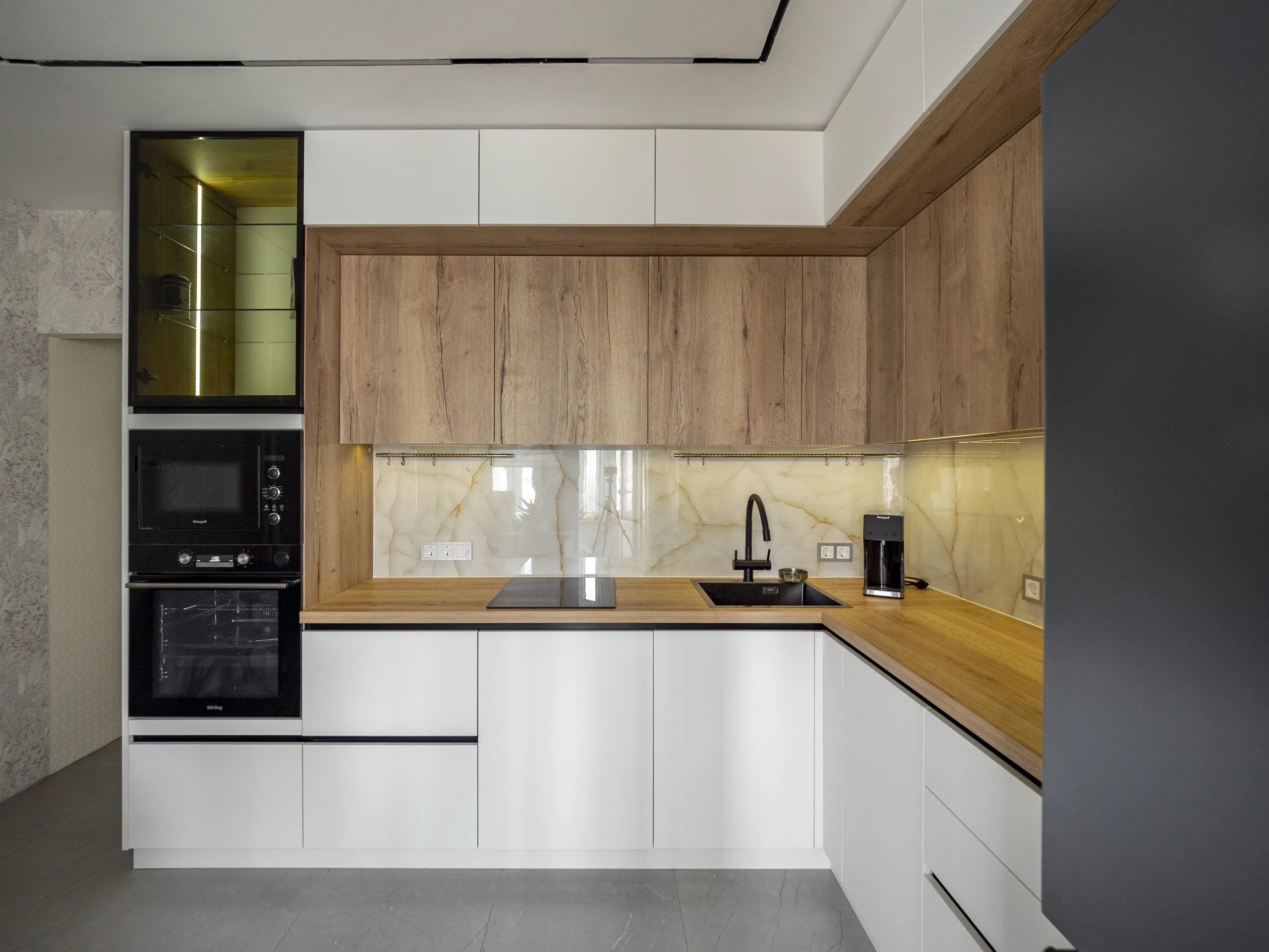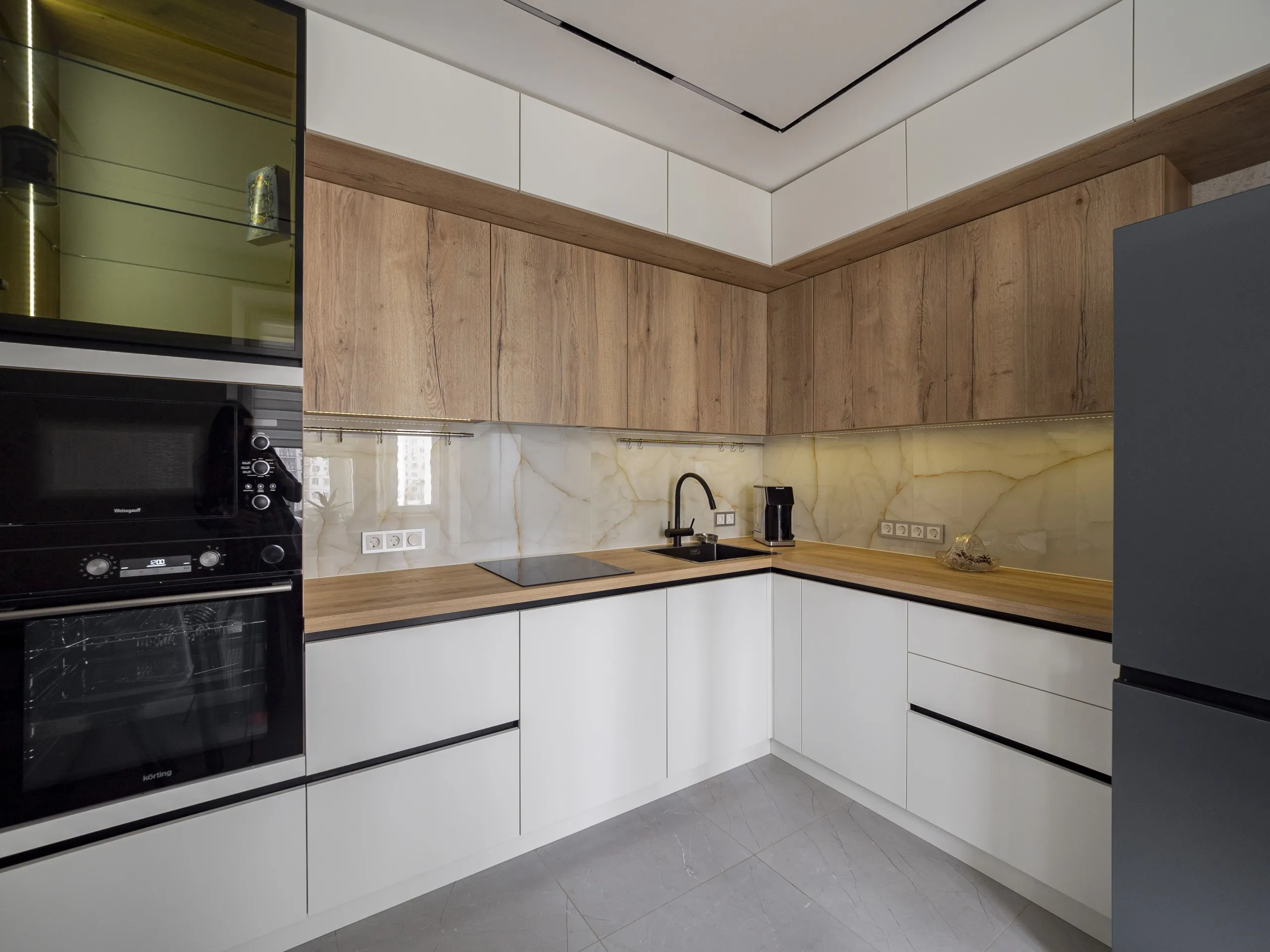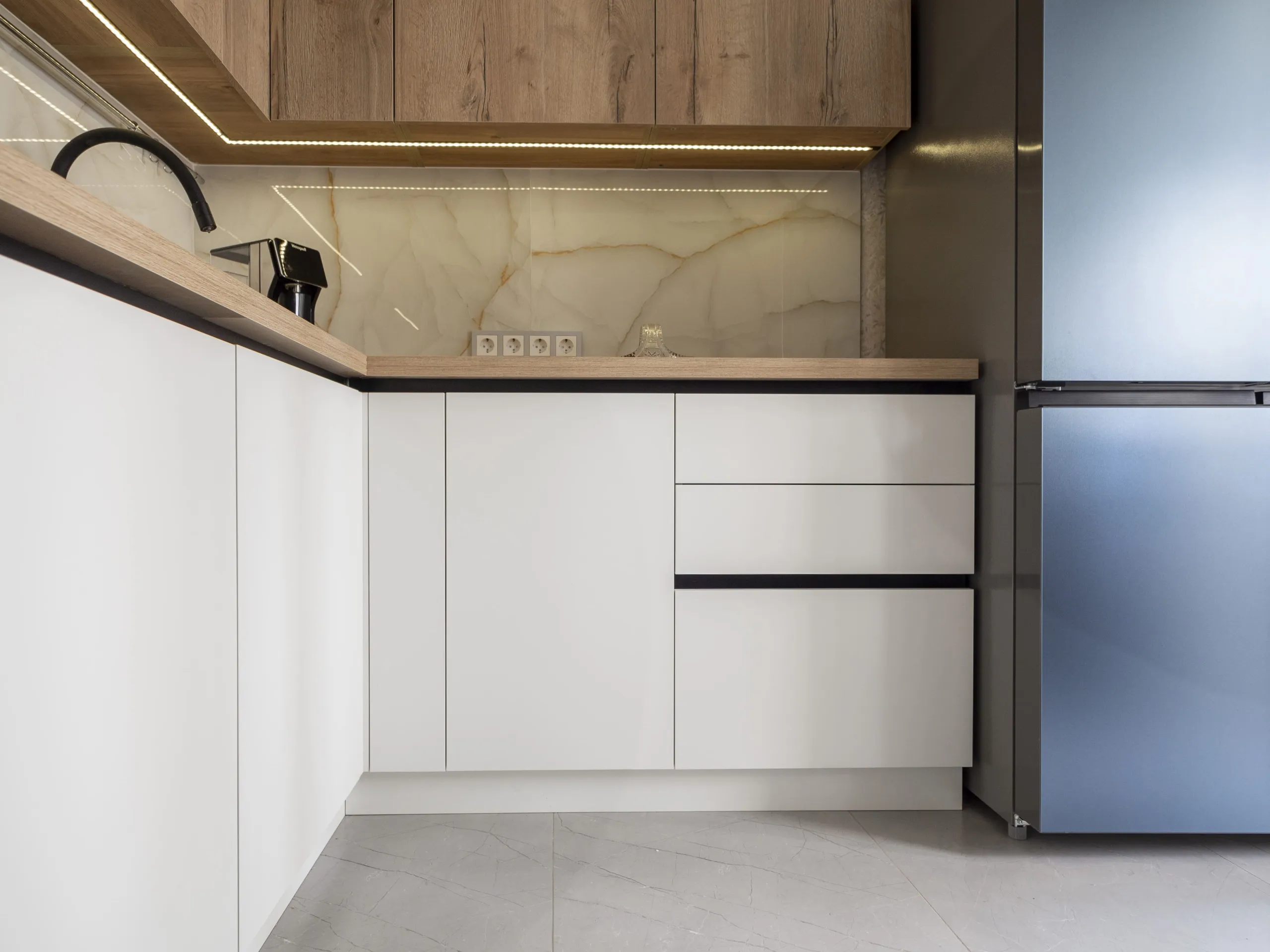 Фасад: Тимбер в цвете Галифакс; Акрил-5 в цвете Белый мат
