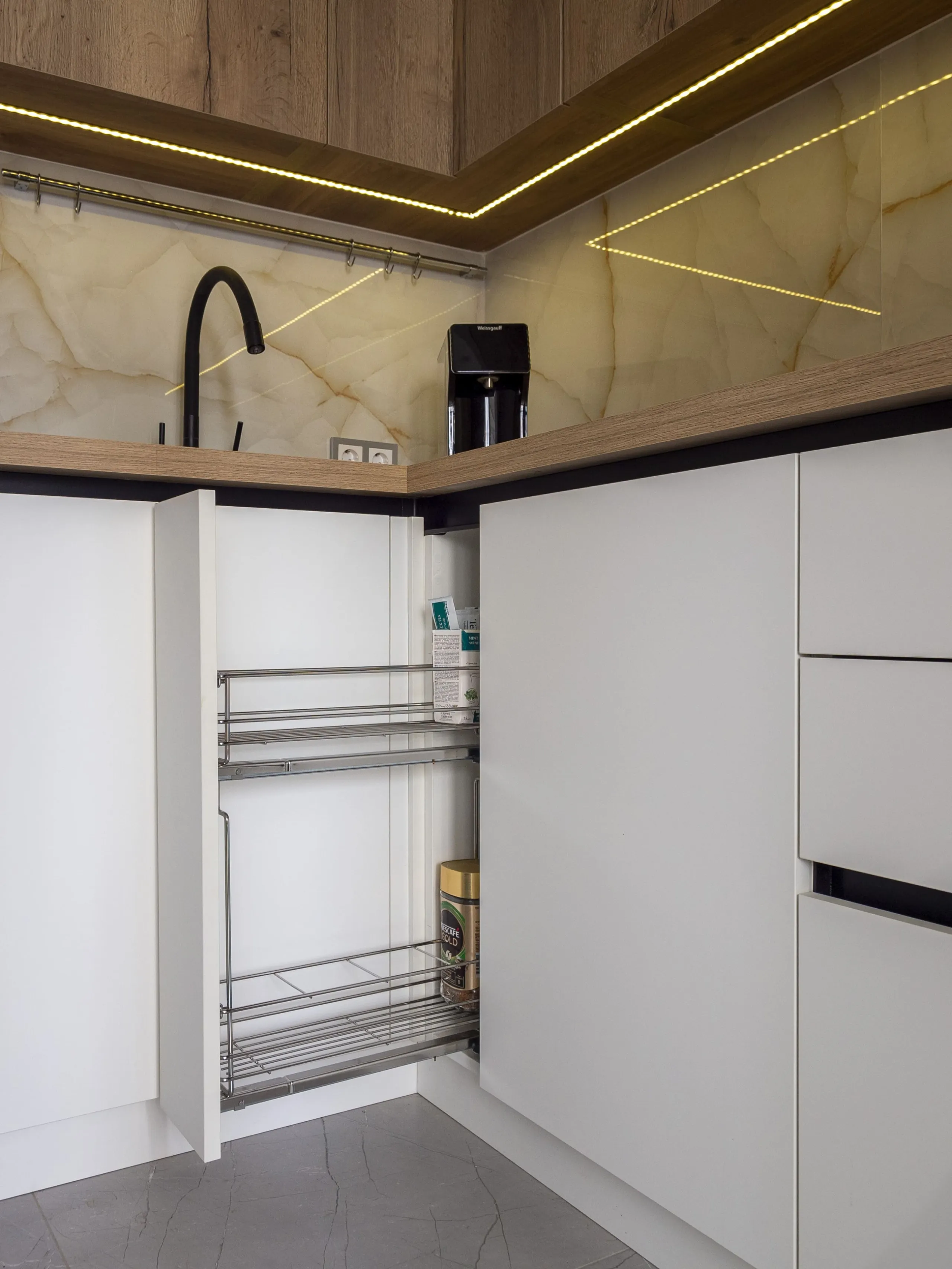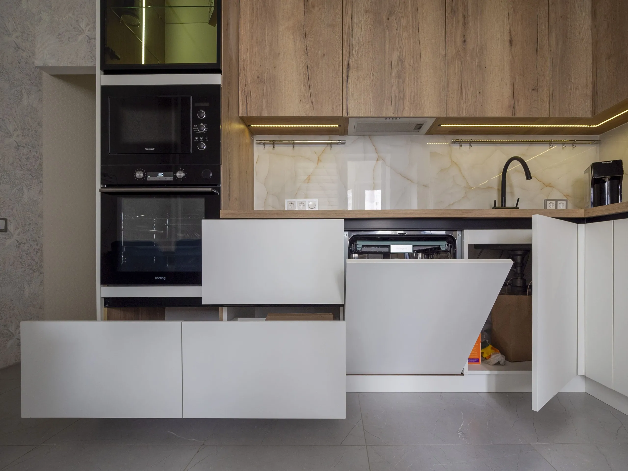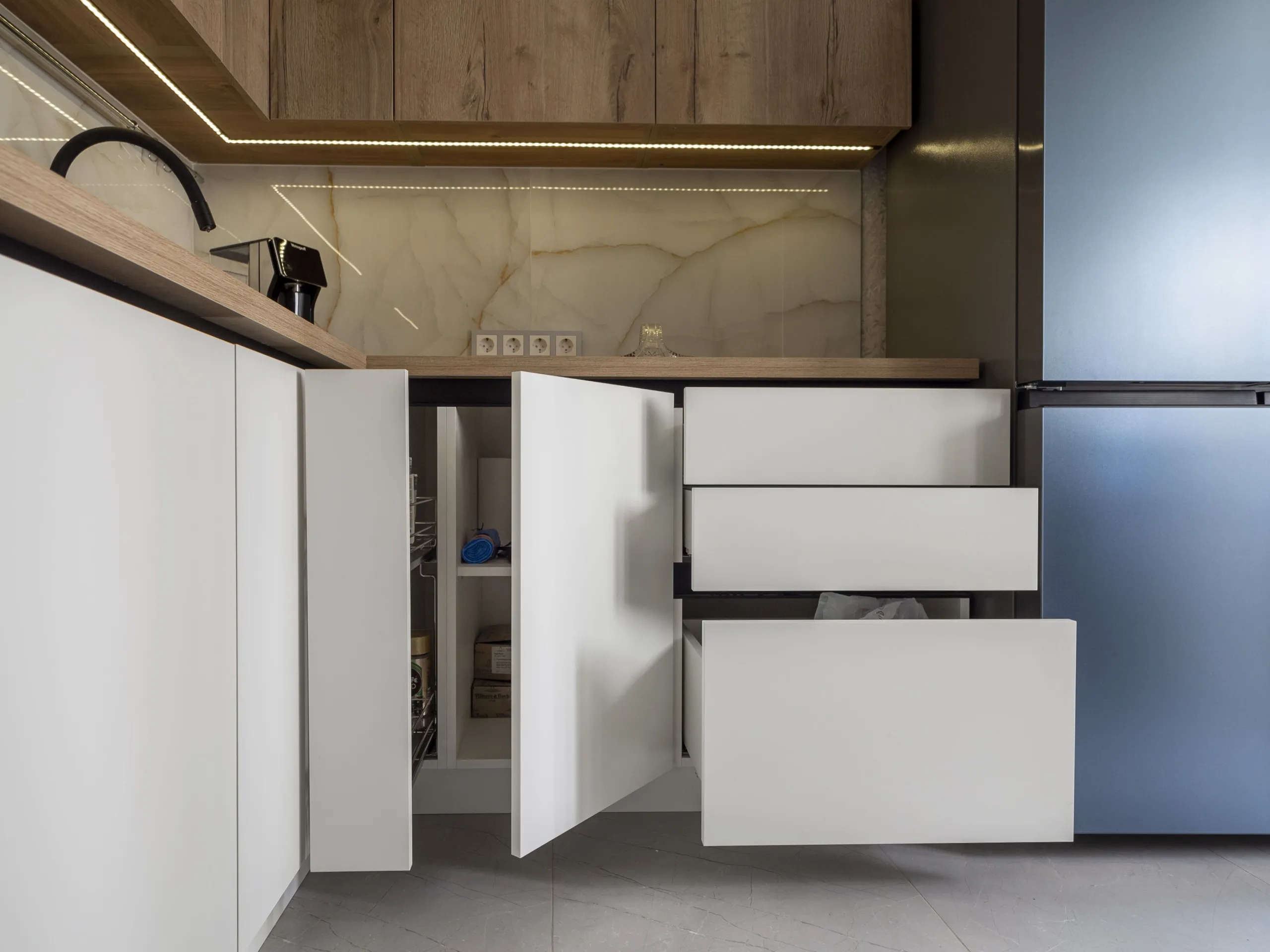 Фасад: Тимбер в цвете Галифакс; Акрил-5 в цвете Белый мат